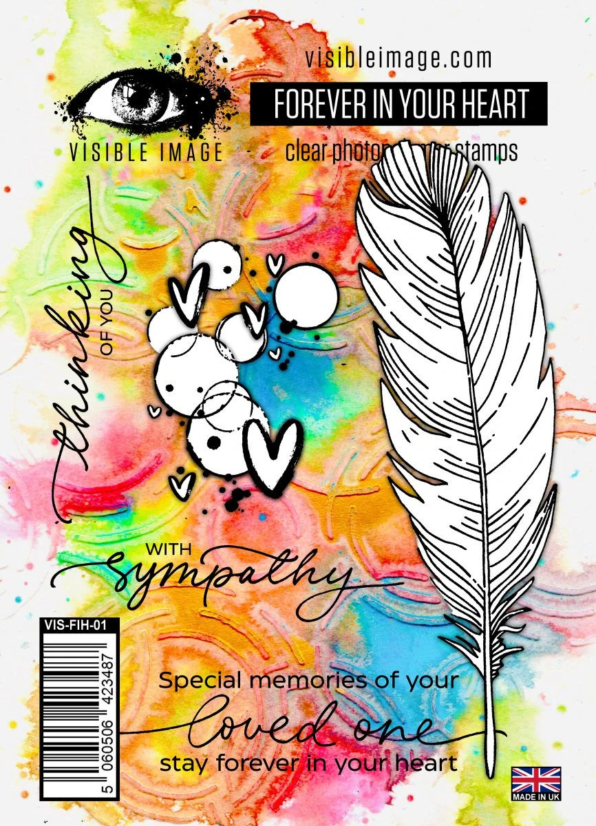 Feather 13cm x 4cm [5 1/4? x 1 1/2?] Hearts & circles element 6cm x 4cm [2 1/4? x 1 1/2?] Forever in your Heart sentiment 8cm x 4cm [3? x 1?] With Sympathy 7cm x 4cm [3? x 3/4?] Thinking of You 7cm x 2cm [3? x 3/4?]